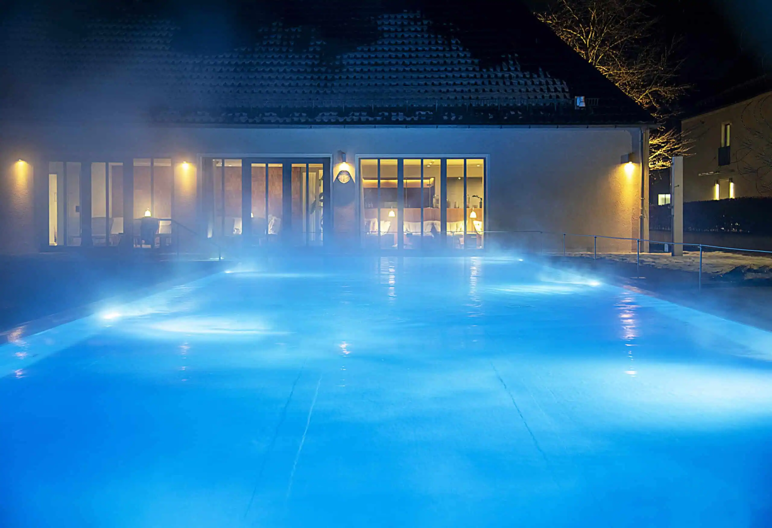 Ideal für ein paar Bahnen nach der Tagung oder einem winterlichen Tagesausflug, oder zum Abschalten im warmen Wasser mit Blick in den Park.