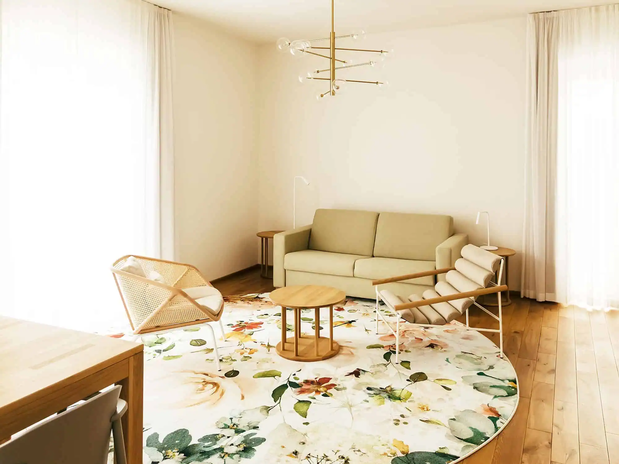Vier frisch renovierte Junior-Suiten laden Sie herzlich zum Entspannen ein: Ein Schlafzimmer sowie ein separater Wohnbereich sorgen für viel Platz, um sich rundherum wohlzufühlen. Bei Bedarf kann zudem die Couch im Wohnzimmer in eine zusätzliche Schlafgelegenheit verwandelt werden. Jede Suite ist individuell eingerichtet und verfügt über ein besonderes Extra – so wartet unsere 110 mit einer frei stehenden Holzbadewanne auf, während Ihnen unsere 409 eine nach Süden ausgerichtete, großzügige Loggia bietet. Wir beraten Sie gerne, welche Suite Ihren persönlichen Wünschen entspricht.