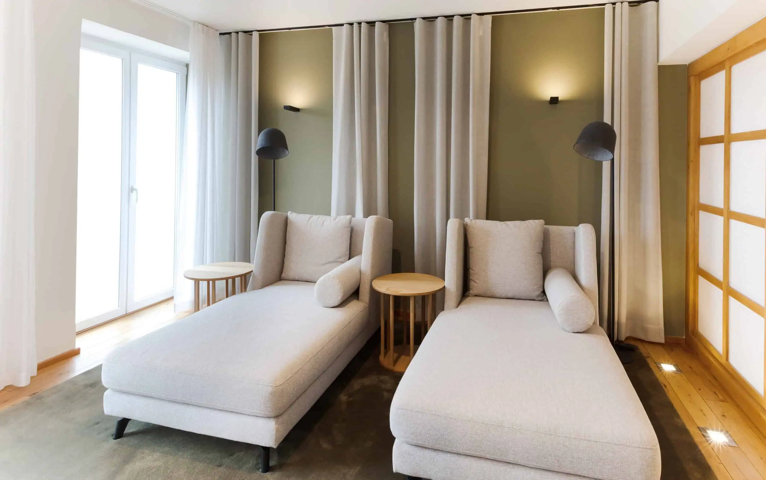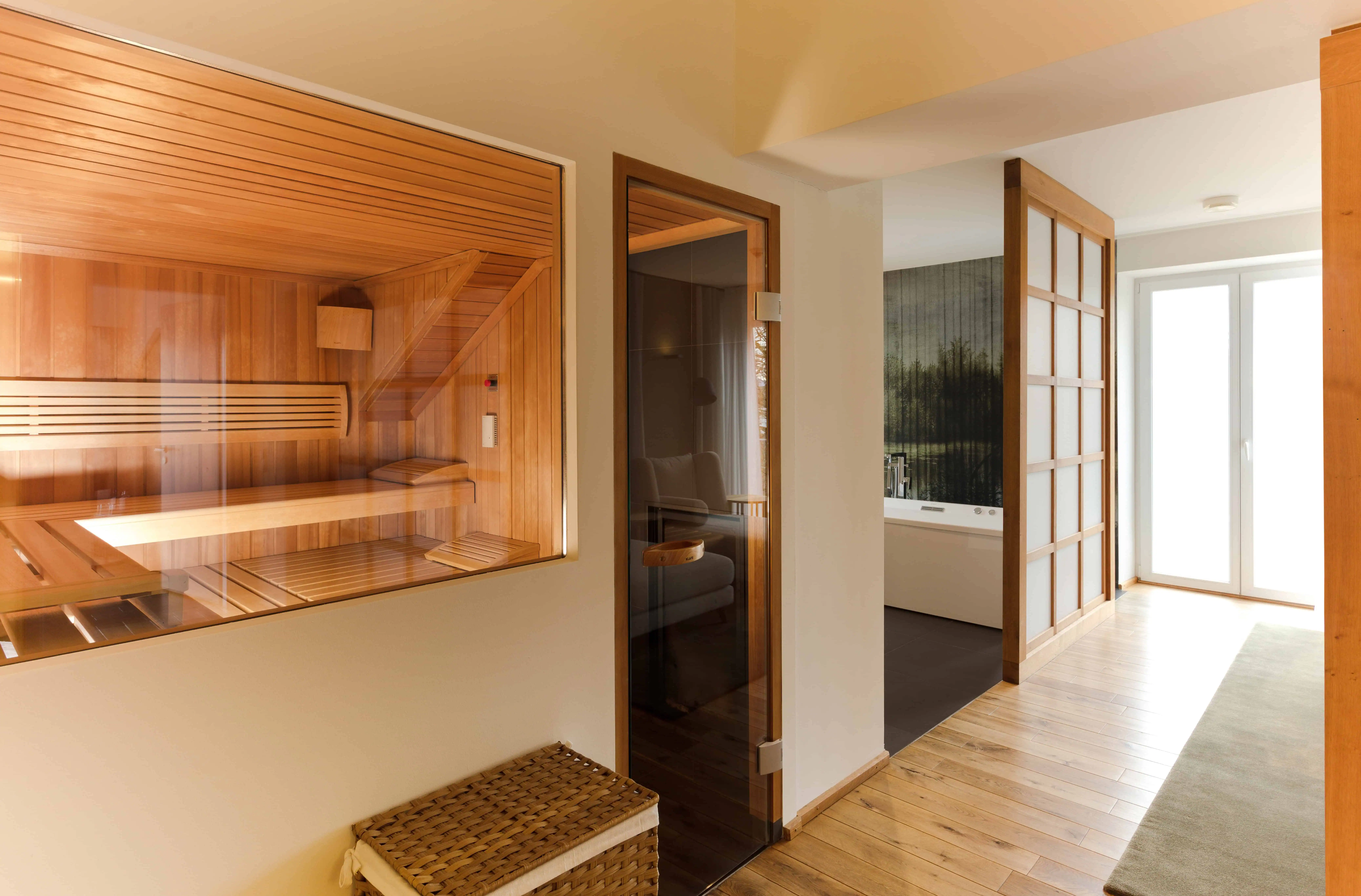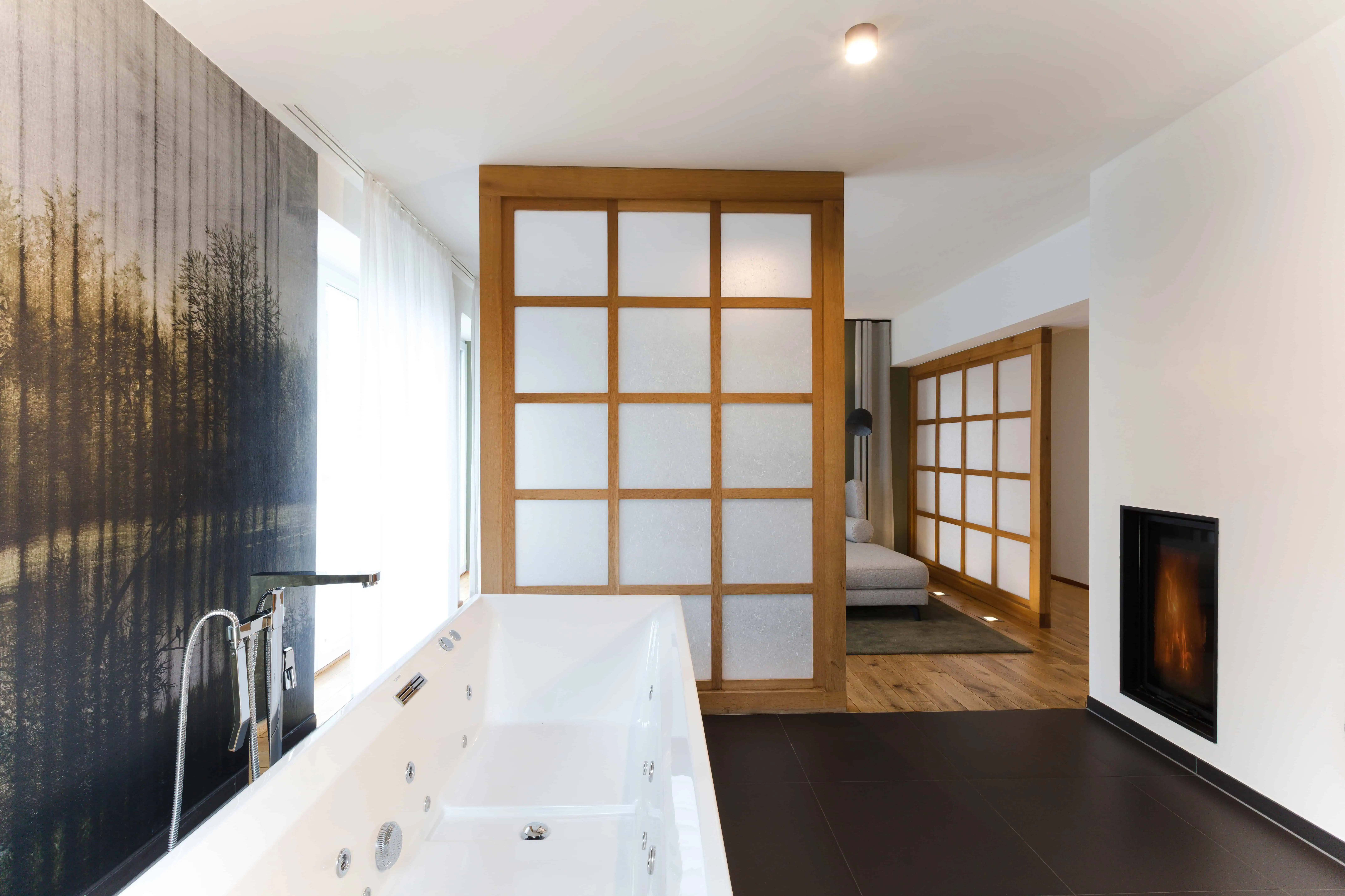 In unserer Wellness-Suite 410 wird Ihr Aufenthalt im B&O Parkhotel zu einem besonderen Erlebnis. Auf Sie wartet nicht nur eine private Sauna sowie ein Dampfbad, sondern auch ein zugehöriger Ruhebereich mit bequemen Relaxliegen. Entspannen Sie in Ihrer Whirlwanne im großen offenen Badezimmer mit Blick in den Kaminofen oder aber auf der großen Dachterrasse mit herrlicher Aussicht auf die umliegenden Berge. Eine eigene Küche zählt ebenso zu den Vorzügen dieser exklusiven Suite, wie eine stilvolle Möblierung, die keine Wünsche offenlässt.